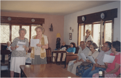 Evoco también nuestras convivencias de fin de curso; celebraciones de Santa Cecilia; mini retiros en el salón parroquial. Y ¿cómo no recordar cómo terminaban siempre nuestras cenas o comidas: compartiendo croquetas, tortillas, pudings, asados, filetes empanados, guacamole, tartas, arroz con leche… y vino, ¡que no falte el vino! Y los cantos, poemas y risas de colofón.