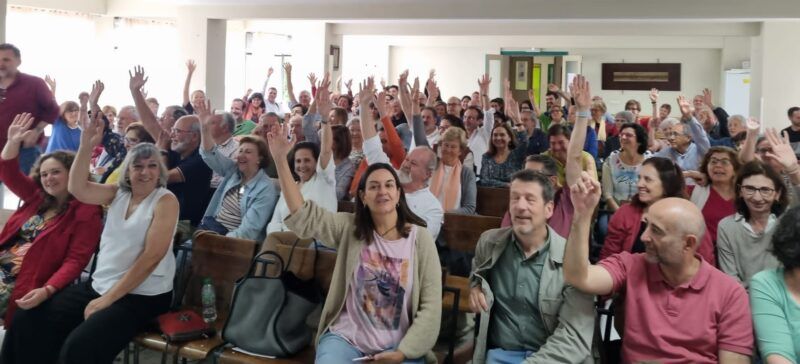 Concluimos el sábado la Asamblea Parroquial con una invocación al Espíritu y con una dinámica de compromiso en la que muchos os animasteis a expresar, mediante un post-it, vuestro compromiso de continuar en diversos servicios para hacer realidad la parroquia que soñamos y que quedó consignada en nuestra visión: Somos una parroquia al servicio de la misión evangelizadora de la Iglesia, comprometida con el Evangelio, que vive, ora y celebra la fe desde la Espiritualidad de la Cruz. Soñamos crecer en sinodalidad, con misioneros, laicos y laicas corresponsables. Soñamos una parroquia abierta a dialogar con el barrio, con la Iglesia y con las realidades del mundo. Soñamos una parroquia con procesos pastorales y de compromiso, una parroquia sencilla y transformadora, inclusiva y acogedora que, con los ojos puestos en Jesús y en el Evangelio, se comprometa con el cuidado de la Casa común. Soñamos ser comunidad de comunidades.